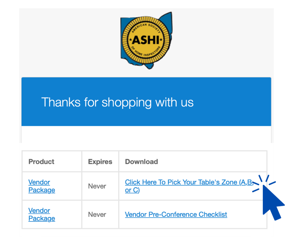 On the Ohio ASHI website, add the Vendor Package to your cart (and any additional meals or tables).